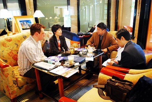 4月18日 , ,,,,应英国林肯学院约请,365英国上市副总司理、安徽365英国上市技师学院院长王礼义在副院长周元清陪同下 , ,,,,在上海与林肯学院院长助理费尔萨尔斯(Phil Sayles)先生及该院国际部主任赵玉梅女士就两校相助办学和交流活动项目举行了真挚友好的谈判。。