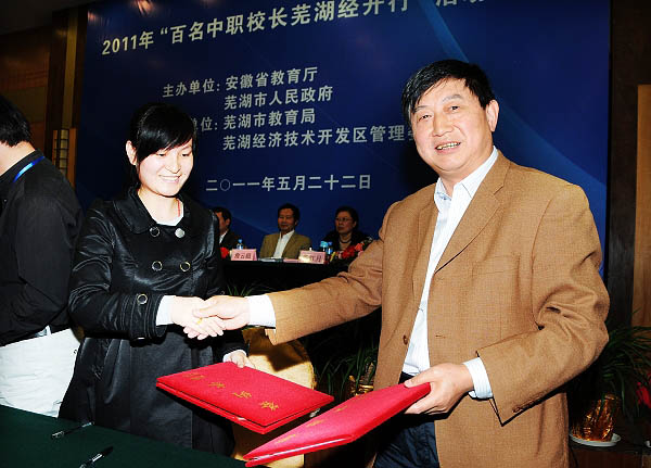 5月22日,王礼义院长应邀赴江城芜湖市出席了“2011百名中职校长芜湖经开行”活动,与信义光伏(安徽)控股有限公司签署了校企对接协议,,,,,,并与多家企业告竣校企相助意向。。。。。。