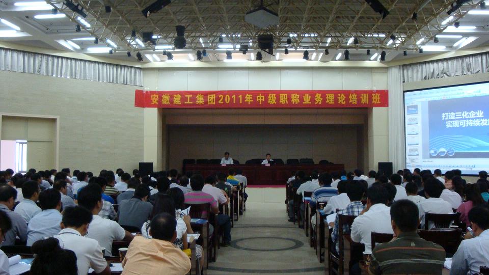 2011年9月16日—17日,,,,,集团公司2011年度中级职称营业理论培训班在合肥举行。。。。。。集团系统申报2011年中级专业手艺职称的共计256人加入了学习培训。。。。。。集团公司董事长、党委书记胡运成出席开班仪式,,,,,副董事长、总司理赵时运出席结业仪式,,,,,并划分为学员授课,,,,,集团公司人力资源部主任李鹏飞主持培训聚会。。。。。。