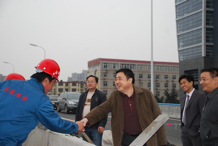 胡董事长一行首先视察了即将完工的合肥市政重点工程——相助化南路高架1标。。。。。在省路桥公司总司理汪卫东、党委书记陈光磊等有关向导的陪同下,,,,胡董事长登上高架桥,,,,沿途视察了工程建设情形。。。。。即将完工的高架桥已经展现雄姿,,,,施工职员正在主要忙碌着,,,,胡董事长走上前与他们握手攀谈,,,,并仔细相识施工新手艺、新工艺、新质料应用情形。。。。。当胡董事长听说相助化南路高架因进度快、质量好、清静文明施工受到合肥市向导及有关部分的多次赞扬时,,,,胡董事长欣慰的笑了。。。。。胡董事长指出,,,,相助化路高架桥建设体现了路桥公司在整合资源上的独到之处,,,,这条路也是他所看过的最好的一条路,,,,安徽路桥公司不愧为安徽路桥行业的第一品牌!