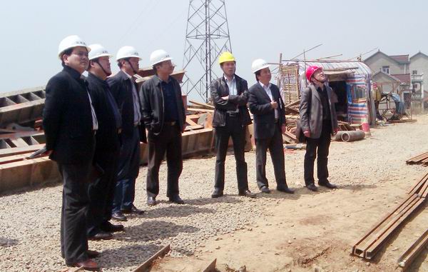 戴总一行首先来到宣狸改建L4标北山河大桥施工现场,,,,,,对北山河桥挂篮及主桥施工举行了详尽的相识,,,,,,并听取了L4标项目司理江仲明关于工程质量与进度、清静文明施工方面的汇报。。随后,,,,,,在L5标项目司理刘冬的陪同下,,,,,,戴总一行观察了L5标全线的生产和进度情形,,,,,,对工程现在阶段的重点和难点给予了建设性指导意见。。