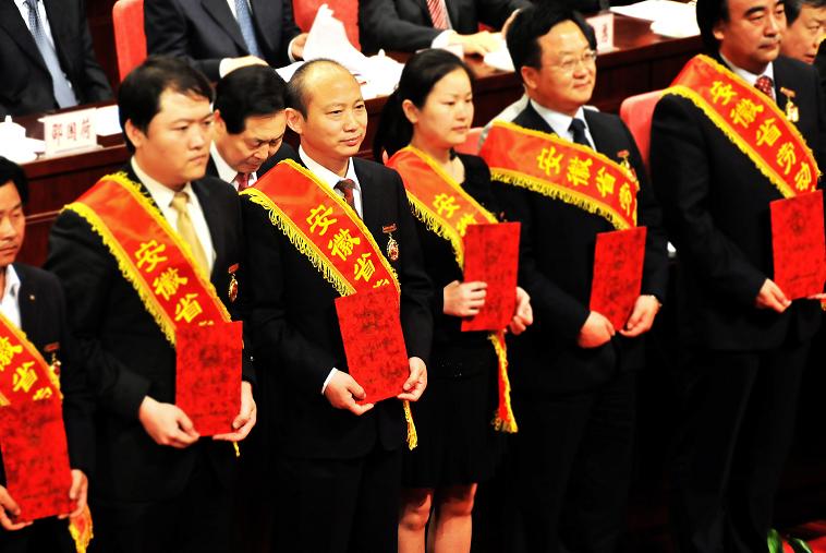 全省劳动模范和先进整体表扬大会, ,, ,,每五年举行一次。 。。这次共表扬679名省劳动模范(先进事情者)和99个先进整体代表, ,, ,,赵时运总司理作为省劳模代表登台领奖。 。。