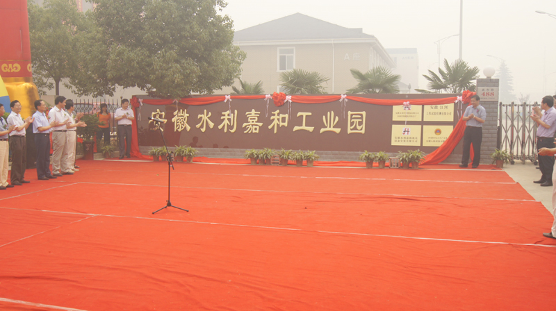 杨总和许总配合为安徽水利嘉和工业园揭牌。。。。庆典活动竣事后,,,,各级向导嘉宾旅行了嘉和工业园厂区及办公楼。。。。