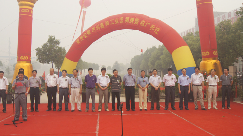 6月9日上午,,,,安徽水利金属结构总厂在蚌埠高新区嘉和路盛大举行“安徽水利嘉和工业园揭牌暨总厂燕徙”仪式。。。。集团公司党委委员、董事、安徽水利总司理杨广亮,,,,集团公司党委委员、副总司理、安徽水利董事许克顺,,,,及安徽水利有关向导张晓林、董传明、李素平、张键、李建军等出席庆典活动。。。。