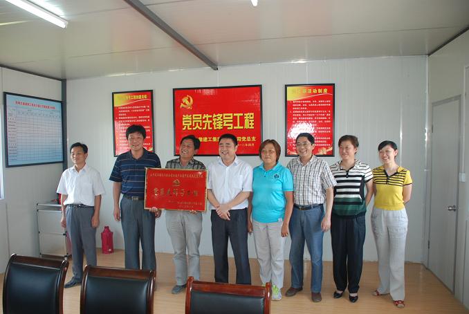 6月20日,,,,,,集团公司党委书记、董事长胡运完婚临海内公司承建的江南工业集中区凤鸣大道项目,,,,,,为该项目争创集团公司“党员先锋号工程”授牌。。集团副总司理王元曦,,,,,,海内公司总司理陈传文及党委事情部同志等陪同。。