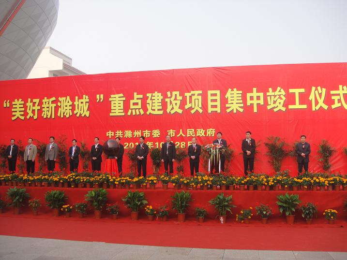 完工仪式上,,,,,,滁州市委书记山河,,,,,,市长张祥安,,,,,,365英国上市党委副书记、副董事长、总司理、安徽水利董事长赵时运配合启动“优美新滁城”重点建设项目集中完工礼仪球。。。。。。仪式竣事后,,,,,,山河书记、张祥市长在赵总的陪同下饶有兴致地旅行了体育馆,,,,,,市向导对体育馆的准期建成,,,,,,对公司为此支付的重大起劲,,,,,,给予了充分肯定和高度评价。。。。。。