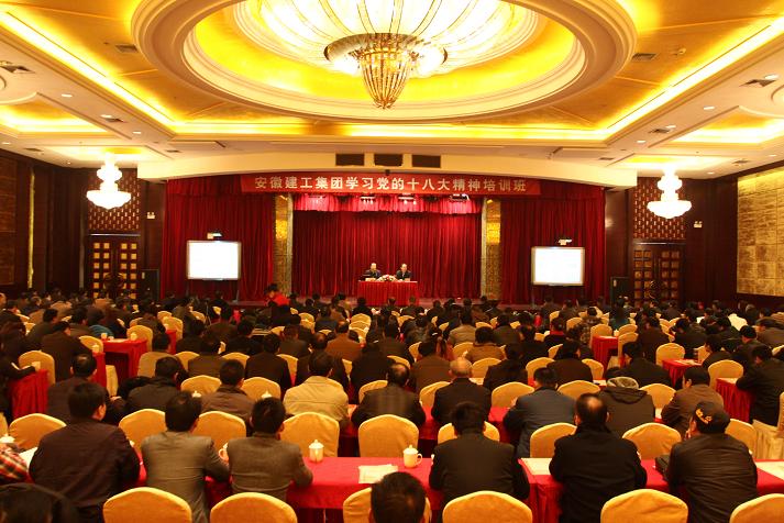 为深入学习宣传贯彻党的十八大精神,,提高集团公司治理层周全准确体会十八大精神。。12月9日,,集团公司举行了一期学习党的十八大精神培训班,,约请了省委党校汪兴福教授作党的十八大精神导读。。集团公司副董事长、党委副书记李长斌主持培训班并讲话。。集团公司向导,,集团公司中层治理职员和所属各单位党支部(总支)书记,,近300人加入了培训。。