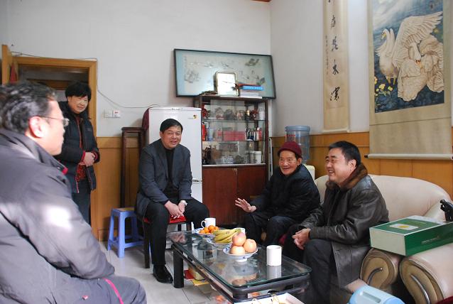 在省装置公司杨树起、曹明建、陈怀和家,,,集团公司总司理、副董事长、党委副书记赵时运仔细询问了他们的生涯和身体情形,,,赵总还探望了省建科院离休老同志范久之,,,对他们为企业作出的孝顺体现谢谢,,,并代表集团公司党委提前向他们及全家贺年。。。。