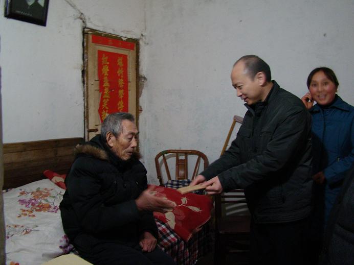 在省水建总公司离休老同志马相家,,,集团公司董事长、党委书记胡运成与87岁高龄的马老促膝谈心,,,详细询问他的身体、生涯和家庭情形,,,谢谢他为企业作出的孝顺,,,并送上新年的祝福。。。。随后,,,胡董事长还划分慰问了3户难题职工和难题党员,,,每到一户都详细地询问他们的身体和生涯状态,,,向他们致以节日的问候,,,并送上慰问金。。。。