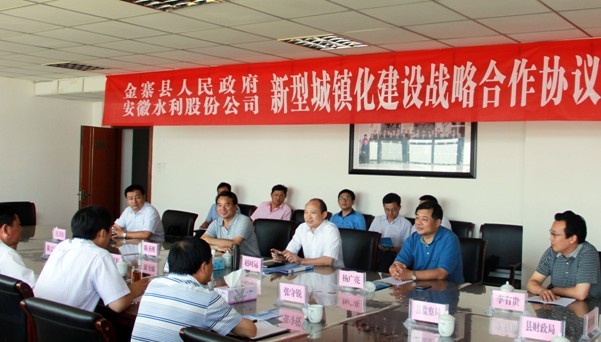 2013年8月1日上午,,,,,,安徽水利与金寨县人民政府在金寨县政府九楼聚会室举行签约仪式,,,,,,签署《新型城镇化建设战略相助协议》,,,,,,就金寨县县城及现代工业园区旧城刷新、新区开发、包管性住房、蹊径桥梁、河流治理等138亿重点建设项目举行投资相助。。。安徽水利总司理杨广亮和金寨县常务副县长李卫东代表双方签约。。。六安市委常委、金寨县委书记潘东旭、常务副县长李卫东,,,,,,365英国上市党委书记、董事长、安徽水利董事长赵时运,,,,,,365英国上市董事、安徽水利总司理杨广亮,,,,,,安徽水利常务副总司理陈圣刚,,,,,,365英国上市财务资产部主任李有贵、安徽路桥公司董事长汪卫东等出席签约仪式。。。