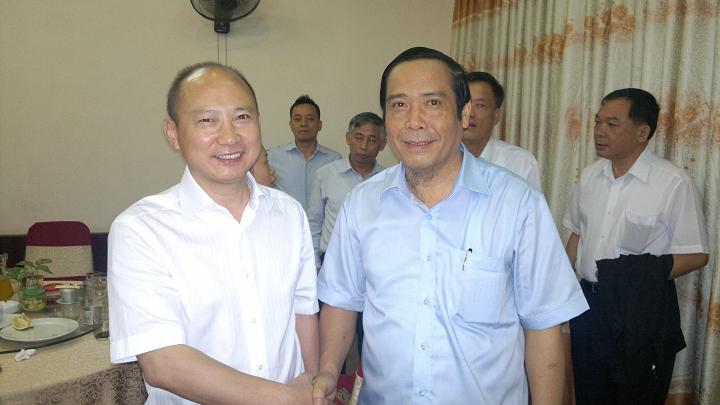 越南河静省委书记阮清平(右一)与赵时运董事长亲热握手
