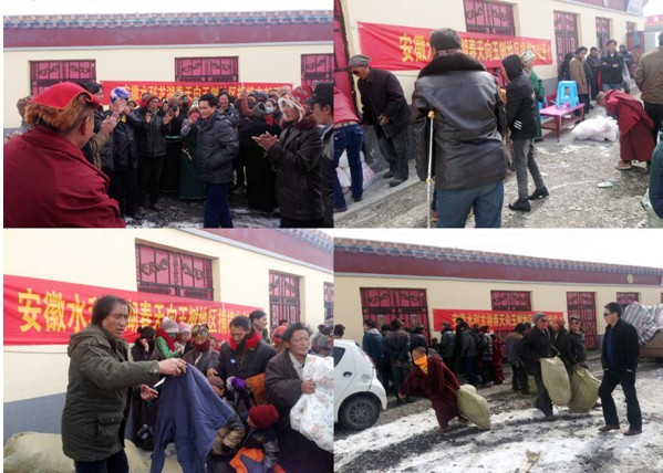 今年1月17日,,,,,,安徽水利清越龙湖春天组织项目职工、小区物业、居委会、小区业主、周边大学学生,,,,,,向青海省玉树藏族自治州称多县贫困家庭及儿童捐棉衣等过冬物品200多公斤。。。