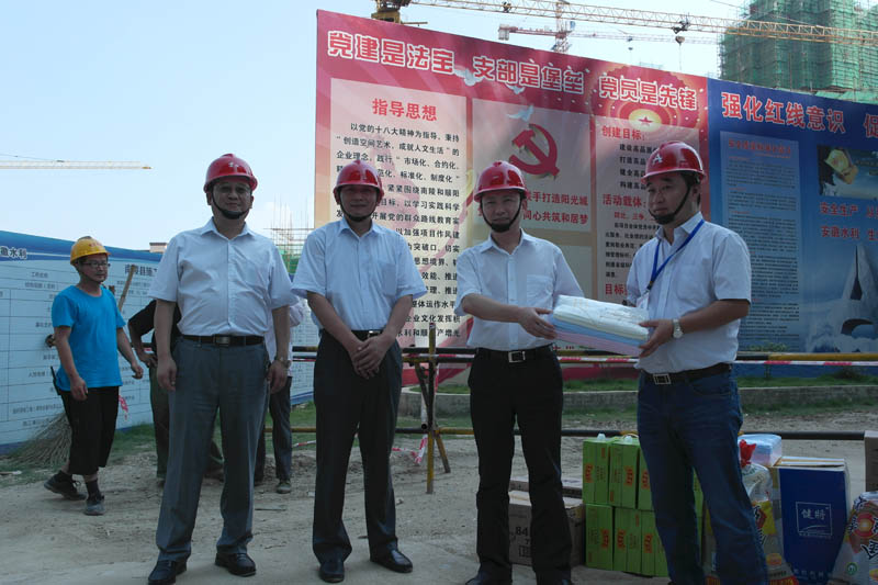 赵总一行首先视察了项目施工现场,,,,,,为项目送去防暑降温物品,,,,,,并对夏日高温坚守岗位的一线职工体现亲热慰问。。。。。