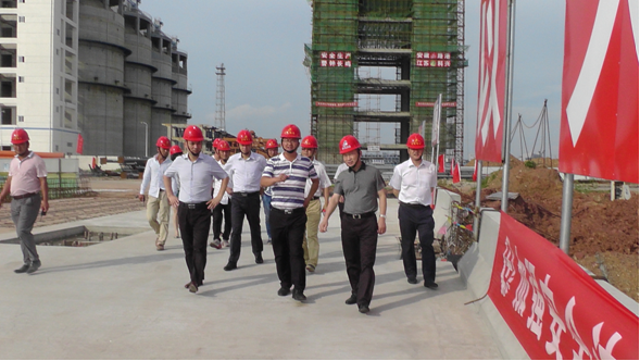 赵时运董事长一行一到项目部,,就冒着酷暑直奔现场、亲临一线,,详细询问了工程施工希望情形,,并重点审查了一线的清静质量等环节,,随后在项目部聚会室召开聚会。。。