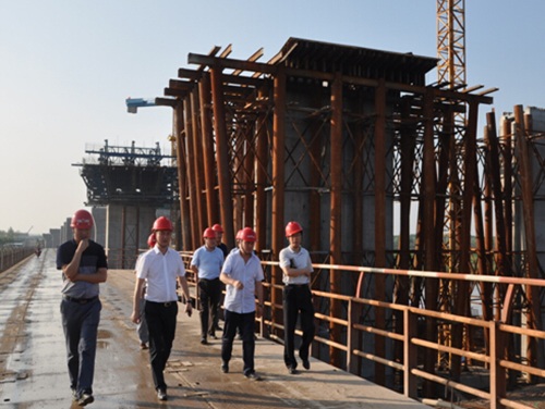 王总首先听取了西北公司司理关于2015年上半年生产谋划治理情形的事情汇报,,,,,,随后审查了在建中的渭河正阳大桥项目和秦汉大道项目,,,,,,对西北公司在工程施工质量、清静、进度等方面取得的效果给予了充分肯定,,,,,,并勉励西北公司继续开拓西北市场。。