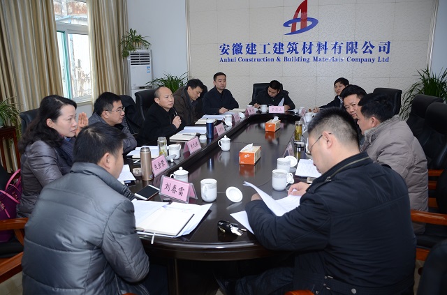2016年1月22日上午,,,,集团公司董事长、党委书记赵时运一行,,,,对安建建材公司举行了调研考察。。。。集团公司副总工程师、信息治理部主任吴红星,,,,财务部主任朱元林,,,,生长妄想部、改制办主任黄代,,,,人力资源部副主任朱金蓉,,,,财务公司副总于忠山、董事会秘书刘春雷等陪同调研。。。。安建建材向导班子,,,,各部分主要认真同志加入了此次考察调研聚会。。。。
