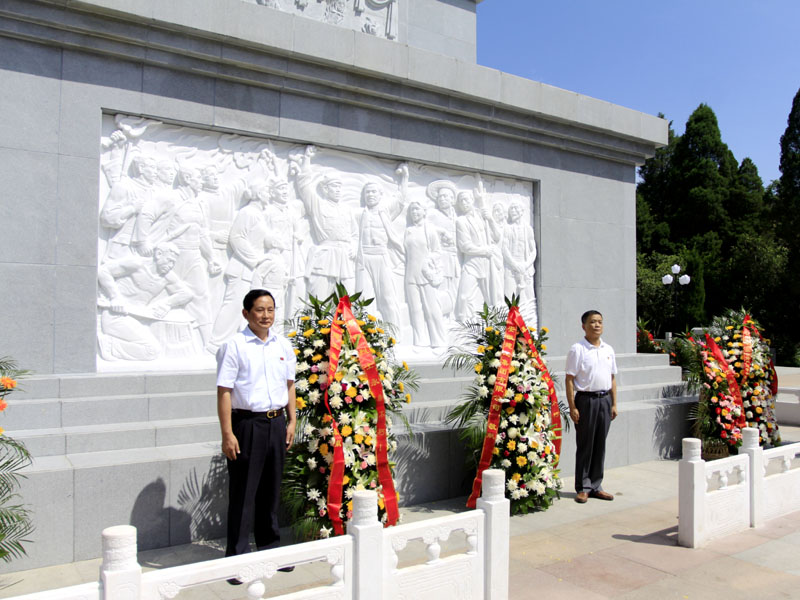 金寨, ,,,地处大别山要地, ,,,被誉为“红军的摇篮、将军的家乡”。。。。。炎炎烈日下, ,,,牛曙东、宋志华代表集团党委、机关党委向义士纪念塔鞠躬致礼、敬献花篮, ,,,在鲜红的党旗下全体党员重温入党誓词。。。。。随后, ,,,机关党委一行瞻仰了红军纪念堂, ,,,旅行了金寨县革命博物馆, ,,,深切追忆我党我军在大别山地区的峥嵘革命岁月, ,,,真情思念革命先烈不畏牺牲的英雄事迹, ,,,宽大党员同志接受了一次深刻的党性教育和精神洗礼。。。。。