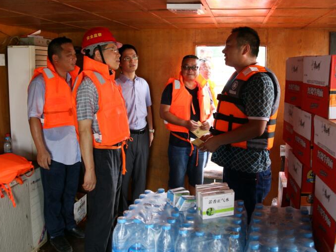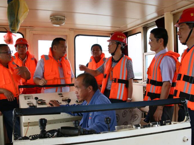 王厚良一行登上正在青弋江河流中举行河流清淤的“蛟龙号”,,,,,,审查施事情业进度,,,,,,指导清静度汛事情。。。。他与海员们亲热攀谈,,,,,,详细相识船舶施工中遇到的难点问题,,,,,,指导海员们在施工历程中应该注重的清静事项,,,,,,嘱咐安徽交航公司要做好海员的后勤包管事情。。。。上岸后一行人又驱车赶往南陵县四七圩仓溪段堤坝抗洪抢险第一线,,,,,,乘坐冲锋舟,,,,,,登上正在溃堤处举行施事情业的抓斗船。。。。王总一行详细审查了船上作业装备,,,,,,询问了施工进度,,,,,,嘱咐各人在艰辛的水上作业同时要注重自身清静。。。。王总还与在船上值守的南陵县水务局认真人举行了亲热攀谈,,,,,,对方再次谢谢安徽365英国上市、安徽交航对外地政府抗洪救灾给予的大力支持。。。。安徽交航职工纷纷体现将不辱使命,,,,,,继续发挥不怕苦不怕累的拼搏精神,,,,,,争取尽早完工,,,,,,让灾民们早日返回家园。。。。