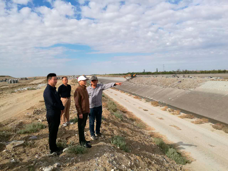 调研时代,,,,赵时运董事长一行深入大漠边境,,,,驱车6个小时抵达安徽水利股份承接的额河泥盐换填3标段视察项目现场,,,,并先后赴安徽装置公司和安徽路港公司共建的乌苏市化工园西区路网项目,,,,以及安徽水利承建的新疆桃源?九点阳光项目等调研慰问。。每到一处,,,,赵时运董事长一行顾不上旅途劳累,,,,第一时间探望扎根边疆的干部员工,,,,向他们体现亲热慰问,,,,同时要求各单位要体贴支持新疆生长,,,,关爱员工,,,,确保清静。。