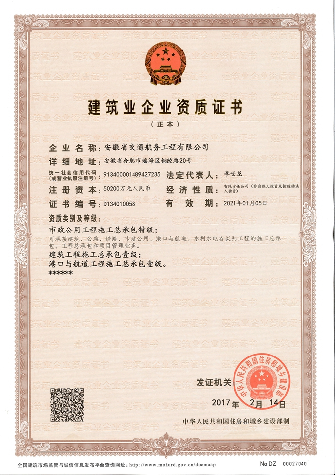 特级资质的乐成提升,,标记着安徽交航生长迈入了又一座新的里程碑。。。。。特级资质是我国修建业资质标准的最高级别,,是权衡修建企业整体实力的主要标记,,更是一个地区修建业生长水平的主要标记。。。。。