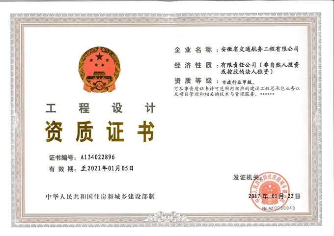 安徽交航公司喜获市政公用工程施工总承包特级资质