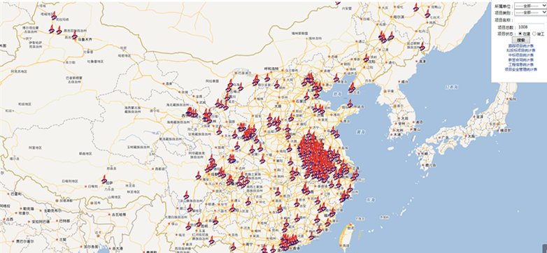 克日,,为增强对集团所属施工类企业项目(在建、完工)的监控治理力度,,包管项目建设的康健、稳固、高效运行,,提防因项目治理杂乱爆发的谋划风险和由此带来的不良社会影响,,连系集团工程治理部分、市场谋划部分、安监局等营业需求。。。。。。凭证项目管控的进度、清静和质量等目的,,集团信息治理部自主开发上线启用了集团实时项目地图治理系统,,最终实现了一张地图解决项目的管控问题。。。。。。