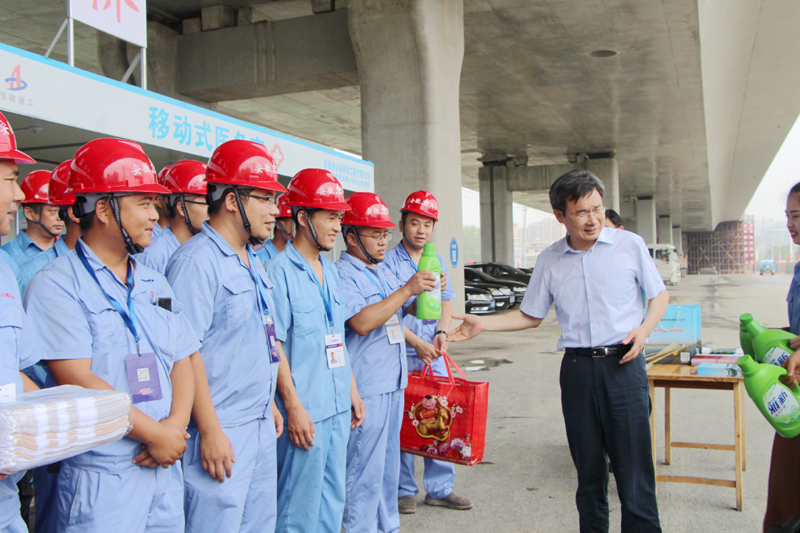 张天培一行与项目部职工逐一握手,,,,关切的嘱咐要注重防暑降温、珍重身体。。。张厅长认真听取了项目认真人关于工程施工情形的汇报,,,,实地旅行了施工现场设置的移动医务室和移动茶水亭,,,,仔细询问防暑降温各项包管事情,,,,对项目部详尽、周密、人性化的防暑降温包管步伐,,,,给予了充分肯定。。。他要求项目部要妥善安排施工妄想,,,,避开高温时段,,,,合理安排作息时间,,,,确保宽大一线建设者人身清静和康健。。。