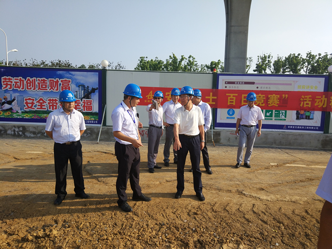王厚良一行深入项目现场,,,,,,实地审查了项目希望情形,,,,,,仔细询问了站点交通导改方案、围护桩施工等详细情形。。。。王总还审查了项目生涯区、办公区建设情形,,,,,,与项目一线员工、青年员工亲热交流。。。。