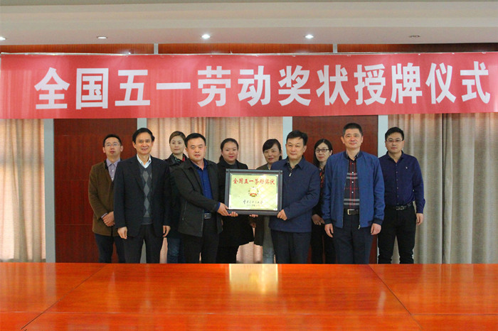 11月1日,,,,,,安徽省建设建材工会专程赴安徽水利开发股份有限公司,,,,,,代表上级工会为安徽水利荣获“天下五一劳动奖状”授牌。。