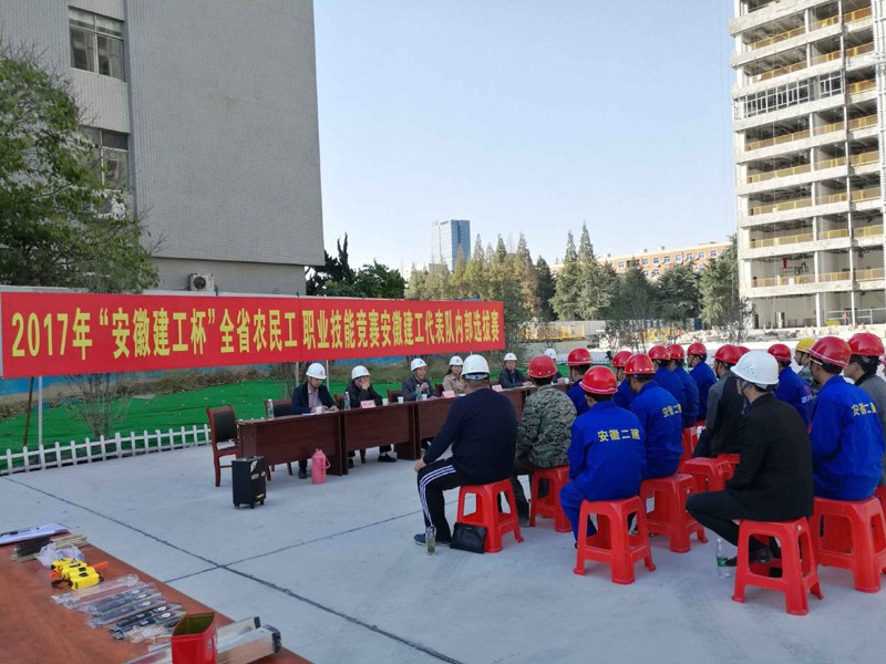 11月9日下昼,,,,,“安徽365英国上市杯”全省农民工职业手艺竞赛安徽365英国上市代表队内部选拔赛在安徽三建中科大项目举行。。。。。集团公司工会主席徐晓光主持选拔赛开幕式并讲话,,,,,安徽一建、安徽二建、安徽三建划分派选手加入集团公司选拔。。。。。