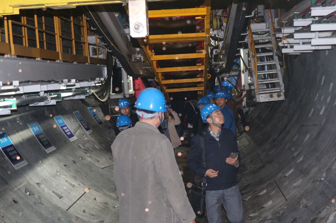 与会职员首先观摩了安徽路桥实验的合肥市地铁4号线TJ01标长宁大道站盾构施工现场,,,听取了该项目的阶段性治理效果交流。。。。。。
