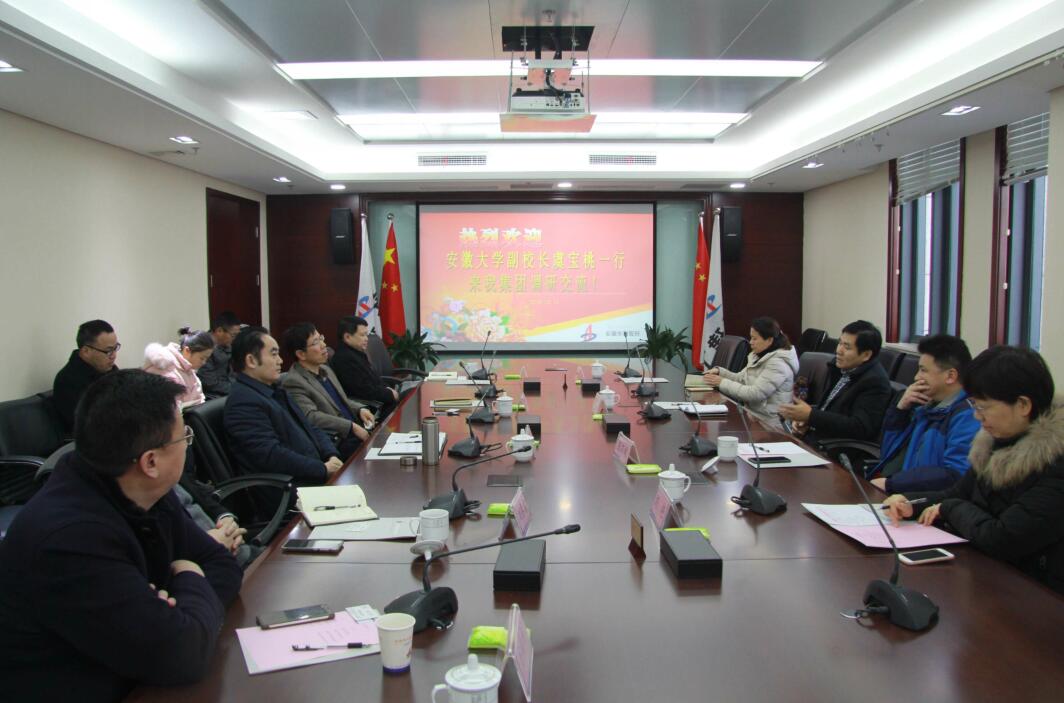 12月12日上午,,安徽大学副校长虞宝桃携校有关部分认真人到访365英国上市,,股份公司董事长王厚良热情接待来访客人一行。。。。。双方围绕校区建设、产学相助等内容开展了深入交流。。。。。