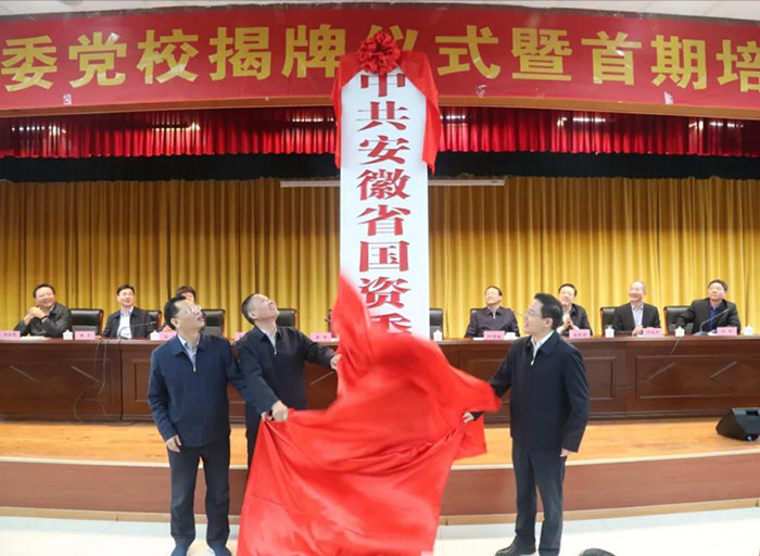 日前,,,,省国资委党委党校揭牌仪式暨首期培训班开班式在徽商职业学院紫蓬校区盛大举行。。。。省国资委党委书记、主任、省国资委党委党校校长李中,,,,省委党校(省行政学院)副校长江观伙,,,,省委组织部组织指导随处长吕国平配合为党校揭牌。。。。省国资委党委委员、副主任、一级巡视员叶传柏主持揭牌仪式,,,,省国资委党委委员陈方、杨东坡、黄干,,,,省属国有企业监事会主席郑成雨,,,,省国资委机关各处室认真人,,,,各省属企业党委专职副书记,,,,徽商职业学院向导班子成员及中层干部,,,,加入首期培训班的省属企业学员共150余人加入了揭牌仪式。。。。