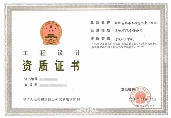 年终岁末,,,,再传喜报!克日,,,,从国家住房和城乡建设部传来重大喜讯,,,,安徽省路港工程有限责任公司乐成提升口岸与航道施工总承包特级资质,,,,同时获得水运行业工程设计甲级资质,,,,成为天下第十五家、天下省属企业首家拥有港航特级资质的企业。。。。至此,,,,集团共有修建工程等7项施工总承包特级资质。。。。