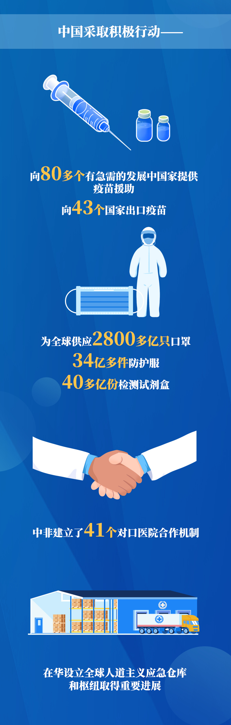 一年来,,,,疫情重复,,,,病毒变异,,,,形势依然重大严肃,,,,国际社会急切期待更多的信心、希望和相助。。。习近平主席心系百姓,,,,胸怀天下,,,,向导开展新中国历史上规模最大的全球人性行动,,,,为全球抗疫孝顺中国智慧和实力,,,,用现实验动践行人类卫生康健配合体理念,,,,获得国际社会高度肯定和起劲响应。。。