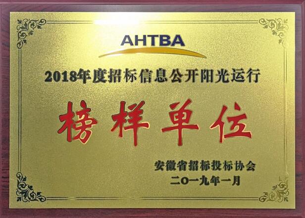 克日,,安徽省招标投标协会第二届会员代表大会第三次聚会暨第二届理事第四次聚会在合肥顺遂召开,,会上,,集团公司被授予“2018年度招标信息果真阳光运行模范单位”声誉称呼。。。