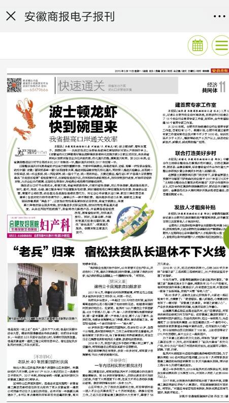 3月8日,,,宿松县召开县摘帽第三方评估座谈会,,,我集团派驻趾凤村第一书记、扶贫事情队长郑军作为5位参会代表之一,,,受邀在会上讲话。。他以老同志扶贫为主题的讲话受到了与会职员的普遍好评,,,安徽商报由此于3月11日专门刊登了题为《“老兵”归来,,,宿松扶贫队长退休不下前方》的报道文章,,,引起较大回声。。