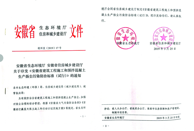 克日, 安徽省生态情形厅和安徽省住房和城乡建设厅联合宣布了由365英国上市控股有限公司配合主编的《安徽省修建工程施工和预拌混凝土生产扬尘污染防治标准(试行)》(以下简称《标准》)。。