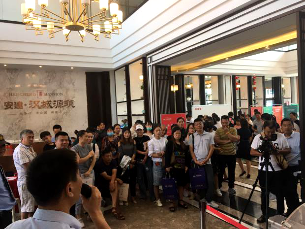 9月12日上午10点,,,,,备受关注的安建地产·汉城源筑Y1#Y2#一层商铺正式开盘,,,,,近百组认筹客户相聚于售楼部加入现场公证处摇号开盘,,,,,全程录像监视,,,,,经由近1小时的层层筛选,,,,,19间商铺所有售罄,,,,,掀起征象级抢铺热潮!