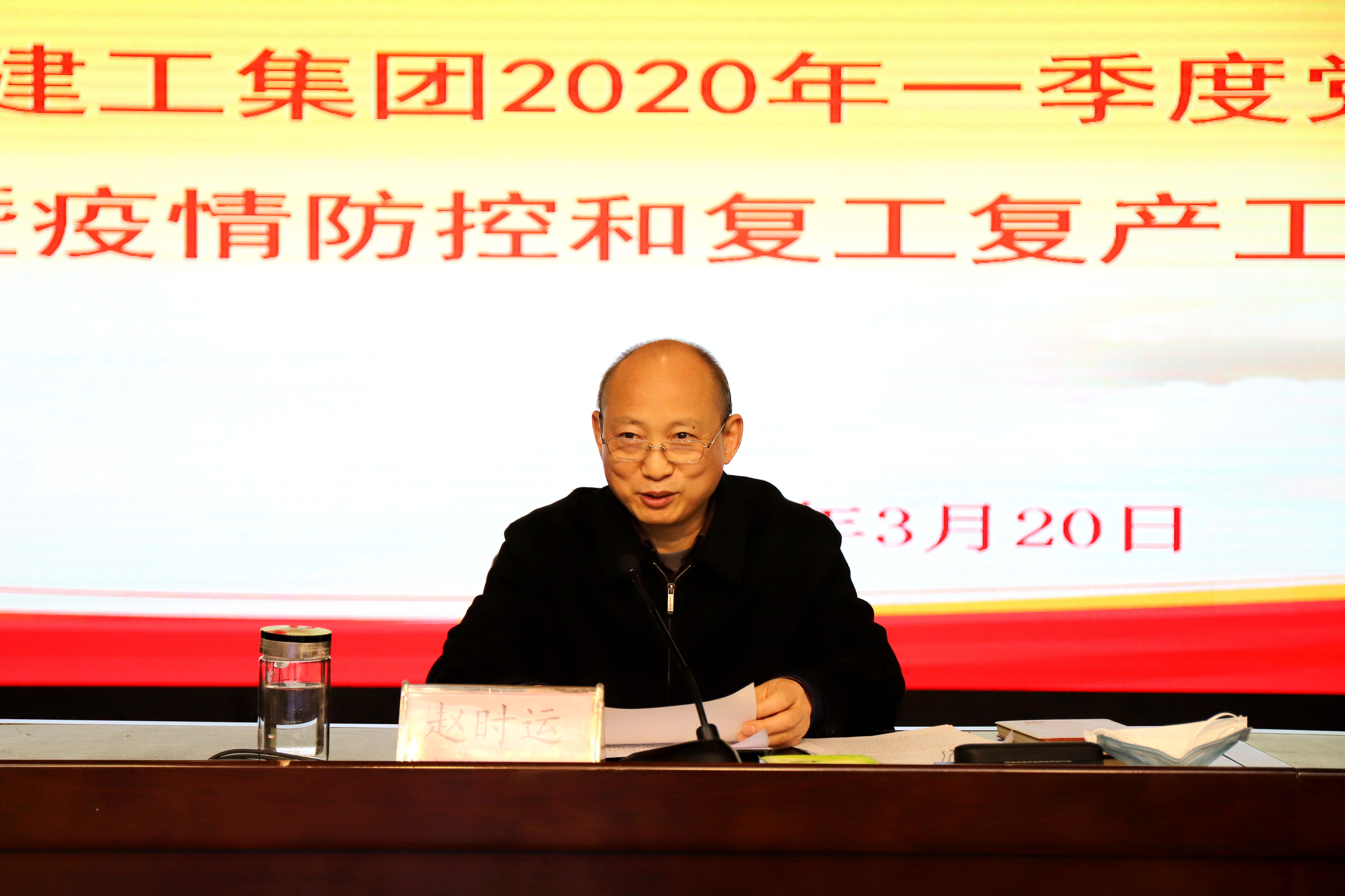 赵时运在讲话中指出,,,,,今年春节以来,,,,,面临突如其来的新冠肺炎疫情,,,,,集团上下高度重视,,,,,坚决贯彻党中央、省委、省国资委党委各项决议安排,,,,,坚持统一直导、统一指挥、上下协同、联防联控,,,,,统筹推进疫情防控和复工复产,,,,,取得阶段性效果。。。。