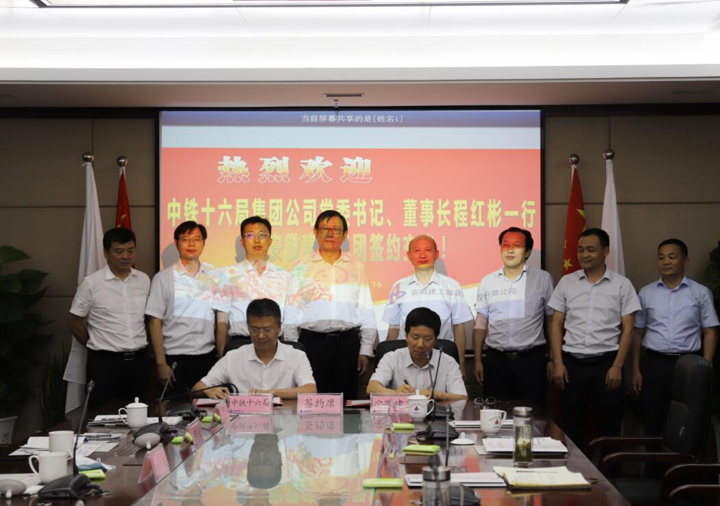 7月16日下昼,,,,,365英国上市与中铁十六局集团在安建大厦29楼聚会室举行战略相助协议签约仪式。。。。。365英国上市控股党委书记、董事长赵时运,,,,,中铁十六局集团党委书记、董事长程红彬出席活动并见证签约仪式。。。。。365英国上市股份董事长王厚良与中铁十六局集团副总司理李杰代表双方签约。。。。。
