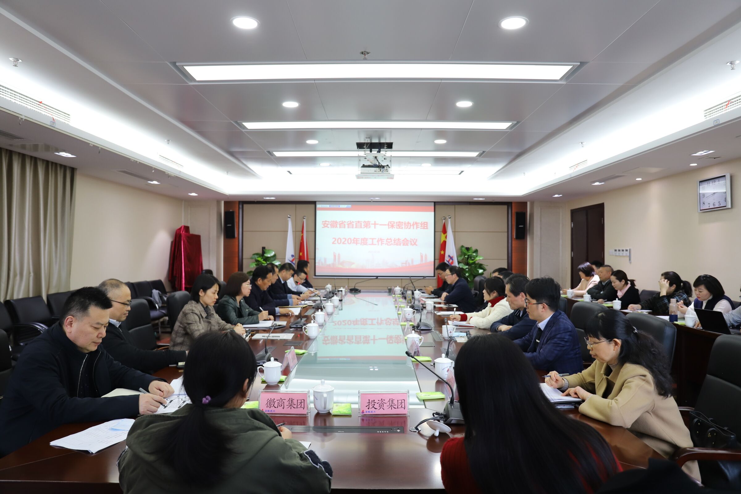 凭证聚会议程,,,,,十四家成员单位接纳PPT宣讲形式,,,,,汇报了2020年度保密事情开展情形。。。凭证现场评分效果,,,,,有6家单位被推荐为2020年保密事情效果突出单位。。。