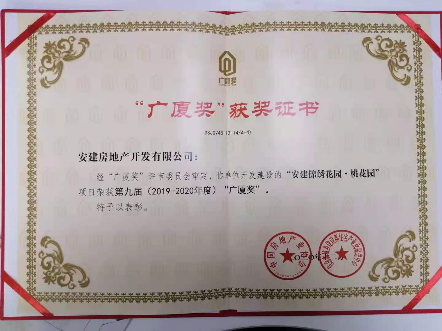 据悉,,,,广厦奖是经国务院批准设立的国家级奖项,,,,由中国房地工业协会、住房和城乡建设部住宅工业化增进中心配合设立的我国房地产开发项目的综合性大奖,,,,相当于鲁班奖、詹天佑奖,,,,代表中国房地产综合开刊行业的最高声誉。。 。。。。