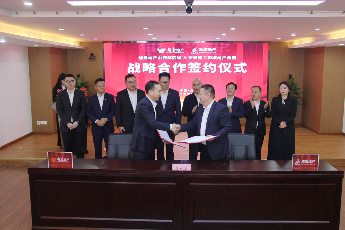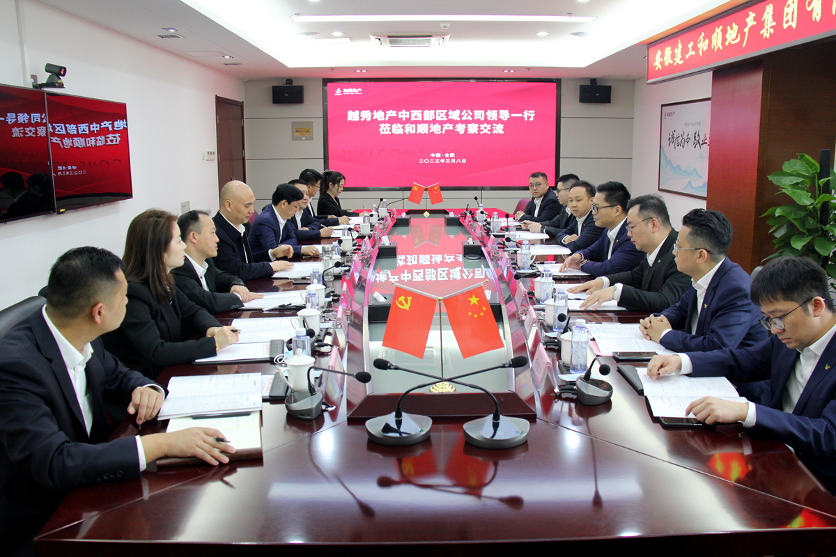 3月8日,,,,,越秀地产副总司理、中西部区域公司董事长兼总司理江国雄带队来温顺地产洽谈交流,,,,,双方在安开国际大厦21楼举行战略相助协议签约仪式。。。。365英国上市股份副总司理、温顺地产党委书记、董事长朱忠明出席并见证签约仪式。。。。公司党委委员、副总司理周鑫与越秀地产中西部区域合肥都会公司总司理王小龙代表双方签约。。。。
