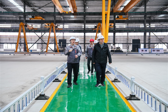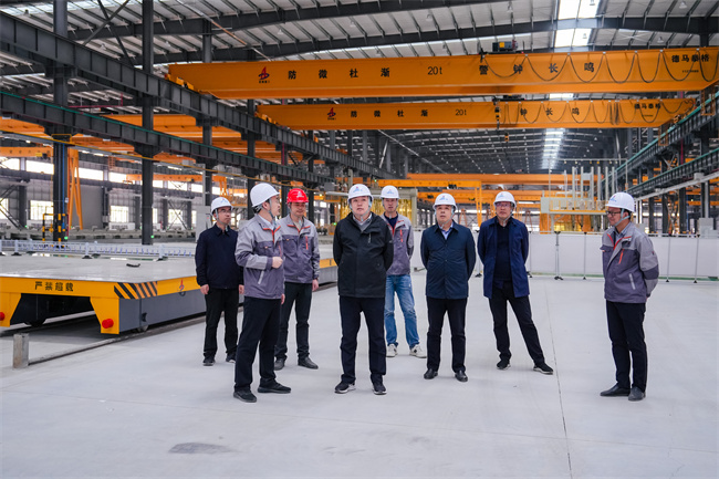 任杰一行先后审查了科研办公楼、职工中心、宿舍楼装修情形,,,,,并走进钢结构重钢厂房,,,,,详细相识了钢结构生产制造历程、智能装备、先进流水线、特殊工艺等。。。。。。