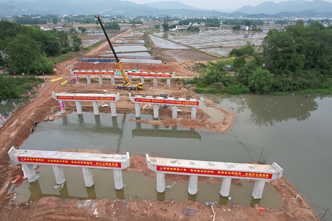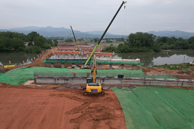 【学贯职代会 建设军号亮】建设投资集团潜山G105、S237改365英国上市程项目鲁坦河大桥下部结构施工顺遂完成