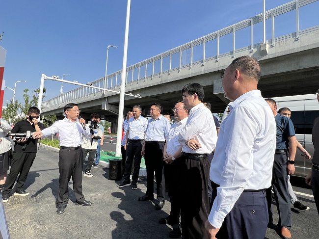 施工现场,,,聂爱国一行详细听取了项目工程概况、施工进度、建设模式、建设周期等情形汇报,,,对项目建设取得的效果给予充分肯定,,,并进一步相识了六安市现在交通建设妄想整体情形。。