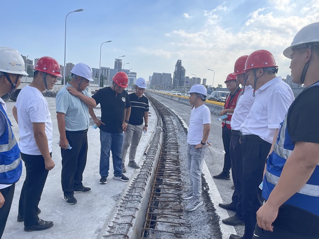 郑浩指出,,,金寨路高架桥绑宽项目是事关民生的重点工程,,,沿线住民群众对该项目能早日顺遂通车翘首以盼,,,为此,,,郑浩局长就进一步加速推进金寨路高架桥绑宽项目建设提出三点要求:一要保工期。。项目要进一步优化施工组织方案,,,加大投入力度,,,有序组织施工,,,确保10月1日节点使命目的顺遂完成,,,为祖国74周年华诞献礼;;;二要保清静。。项目要强化清静意识,,,高度重视清静生产及防暑降温事情,,,严酷落实清静生产责任制,,,落实好各项清静治理行动;;;三要保质量。。牢靠树立质量责恣意识,,,纵然是在高温情形下,,,依旧要严控施事情业的每道工序、每个环节,,,将问题祛除在萌芽状态,,,提高工程质量水平,,,打造精品工程。。