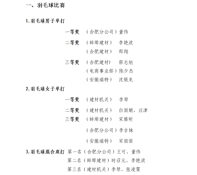 本届运动会运动会设羽毛球、乒乓球、篮球三个竞赛项目七个组别,,,,共有11个代表队约160人参赛,,,,是公司周全开启“千亿建材工业”新征程之际举行的一次综合性体育盛会,,,,赛事活动之多、加入热情之高、竞技气氛之浓为历届之最。。。。。运发动们顽强拼搏、逾越自我,,,,充分展现了365英国上市建材人优异的精神风貌和时代风范。。。。。