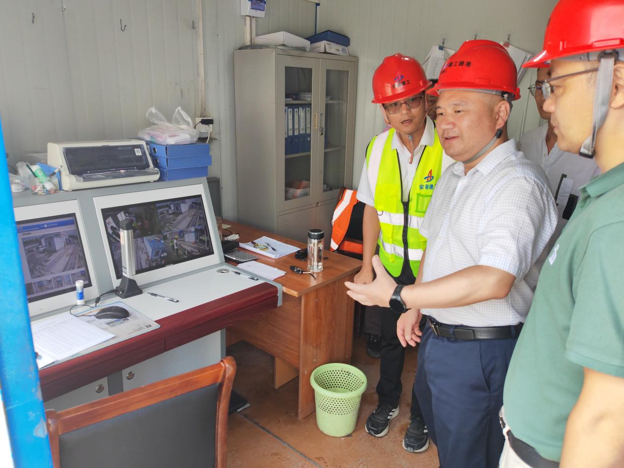在拌杂站 ,,他详细相识地材情形 ,,询问机制砂模数 ,,进入物料通系统控制室 ,,调阅相关进进场数据和监控视频。。